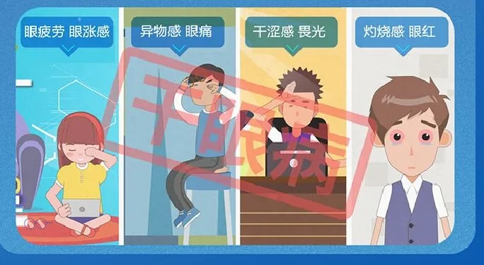 眼睛干燥、異物感、灼燒感、眼睛刺痛、畏光、流淚,短暫性視物模糊,眼睛疲勞等,是干眼的常見癥狀。